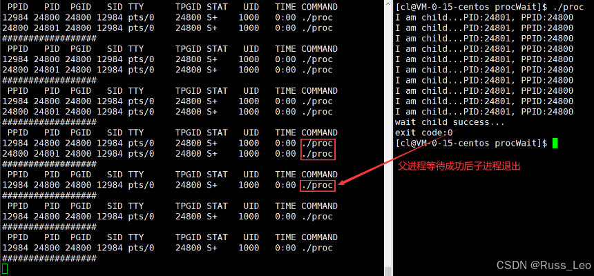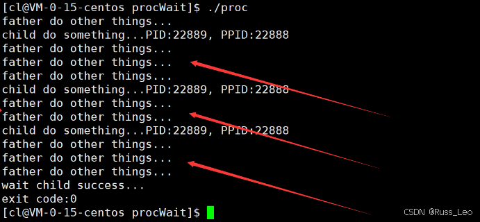 在上面的例子中,当子进程尚未退出时,父进程会一直处于等待状态,这种等待方式被称为阻塞等待。在这种模式下,父进程无法进行其他操作,直到子进程退出。