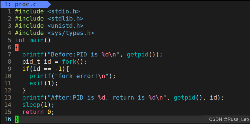 之后,父进程和子进程共享相同的代码段。这意味着在两者中执行的指令是相同的,但它们拥有独立的执行流和数据空间。以下是一个例子: