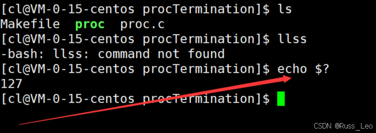命令来查看最近一次进程退出时的退出码信息。