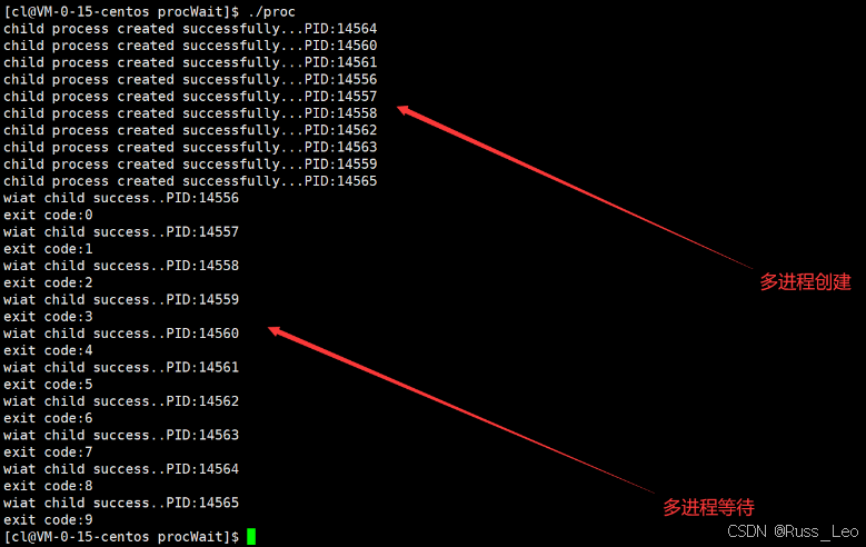 我们还可以使用一种技术,通过创建多个子进程并让父进程依次等待每个子进程的退出,这种方法被称为多进程创建与等待模型。