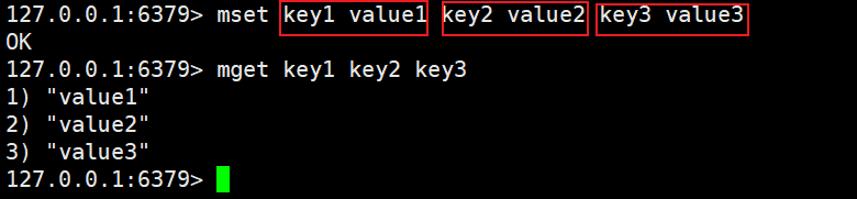 也可以使用 mset和mget,一次插入或查询多组键值对 :