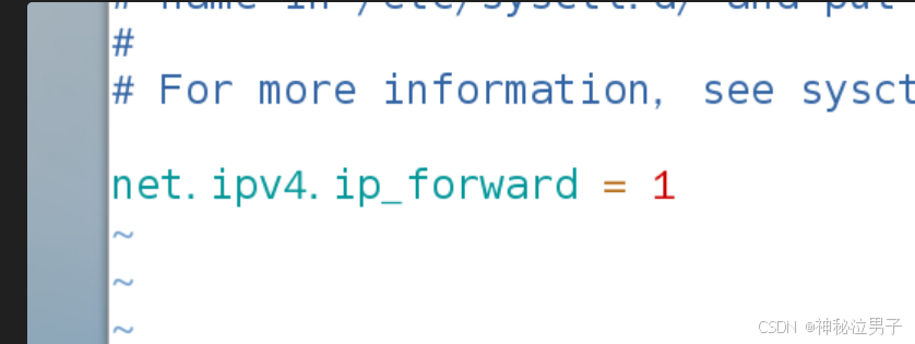 vim /etc/sysctl.conf sysctl -p 刷新 net.ipv4.ip_forward = 1