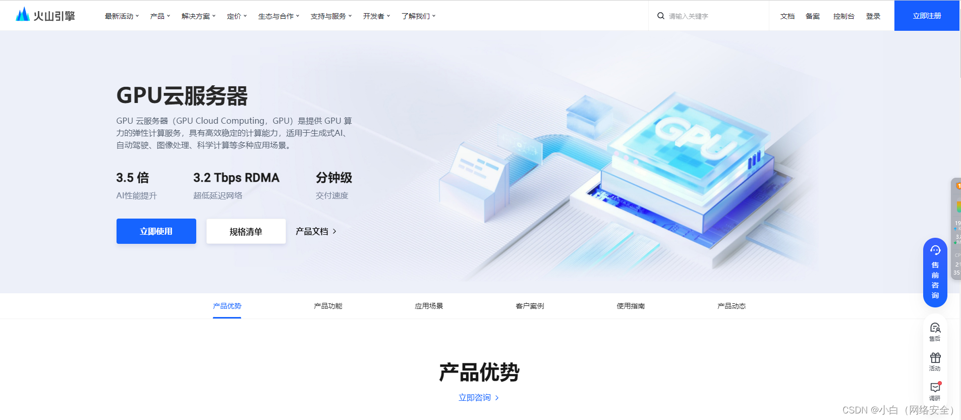 - 优点:拥有安全可靠的云服务,提供专业的技术支持。抖音得发展使得火山云迅速崛起,未来可期