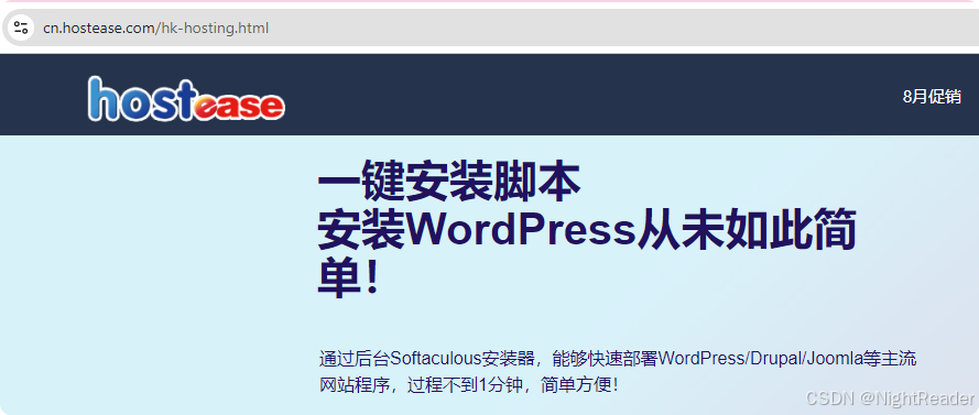 选择一个可靠的服务器提供商也是确保网站稳定运行的关键。我们需要一个稳定、高效的服务器来保障网站的正常运行。推荐使用Hostease服务器,它不仅性能优越,还提供极高的稳定性和安全性,还支持一键安装WordPress功能。