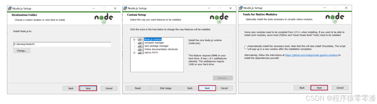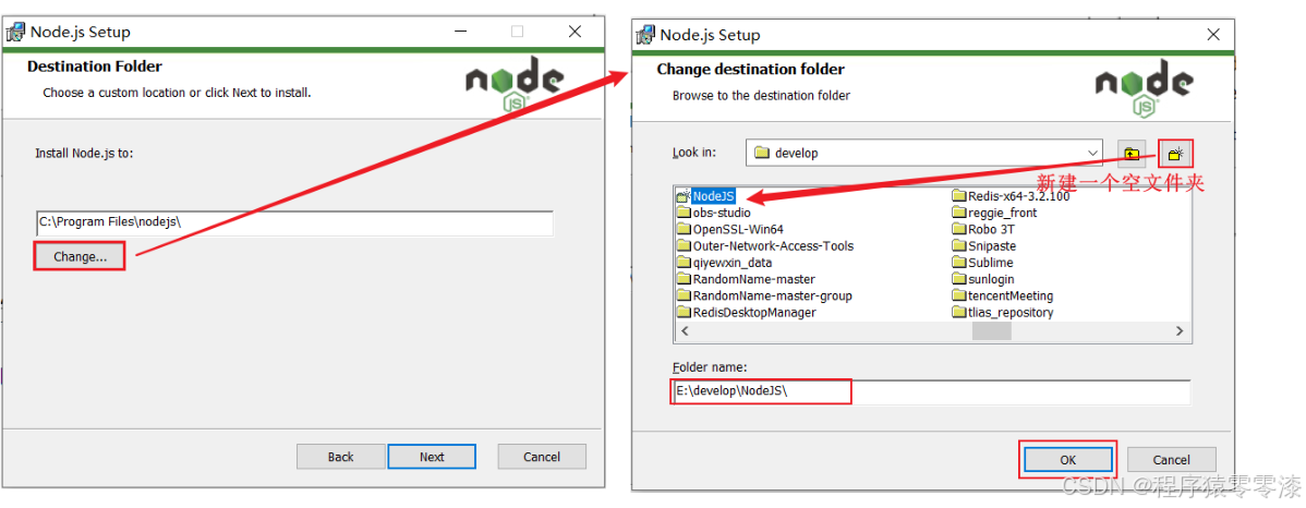 选择安装到一个,没有中文,没有空格的目录下(新建一个文件夹NodeJS)
