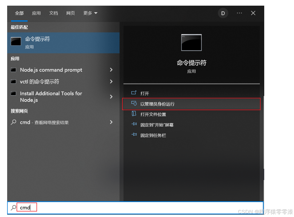 使用管理员身份运行命令行,在命令行中,执行如下指令: