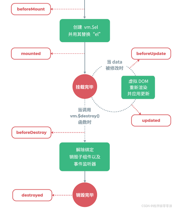 - 生命周期的八个阶段:每触发一个生命周期事件,会自动执行一个生命周期方法(钩子)