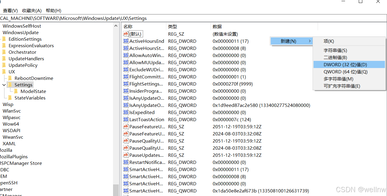 计算机\HKEY_LOCAL_MACHINE\SOFTWARE\Microsoft\WindowsUpdate\UX\Settings