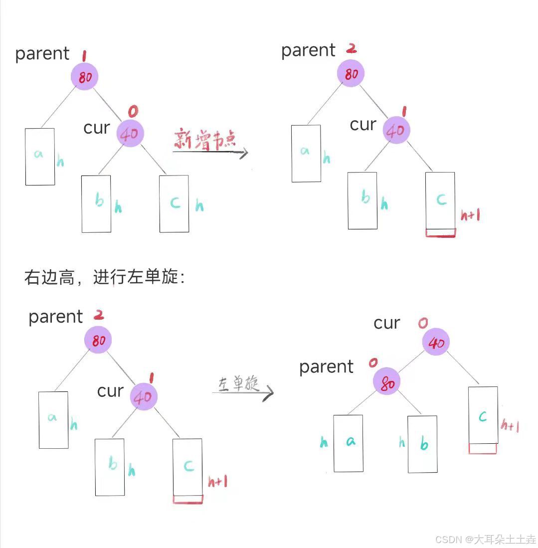 parent和cur的平衡因子经过旋转之后变为0,维持了AVL树的平衡。