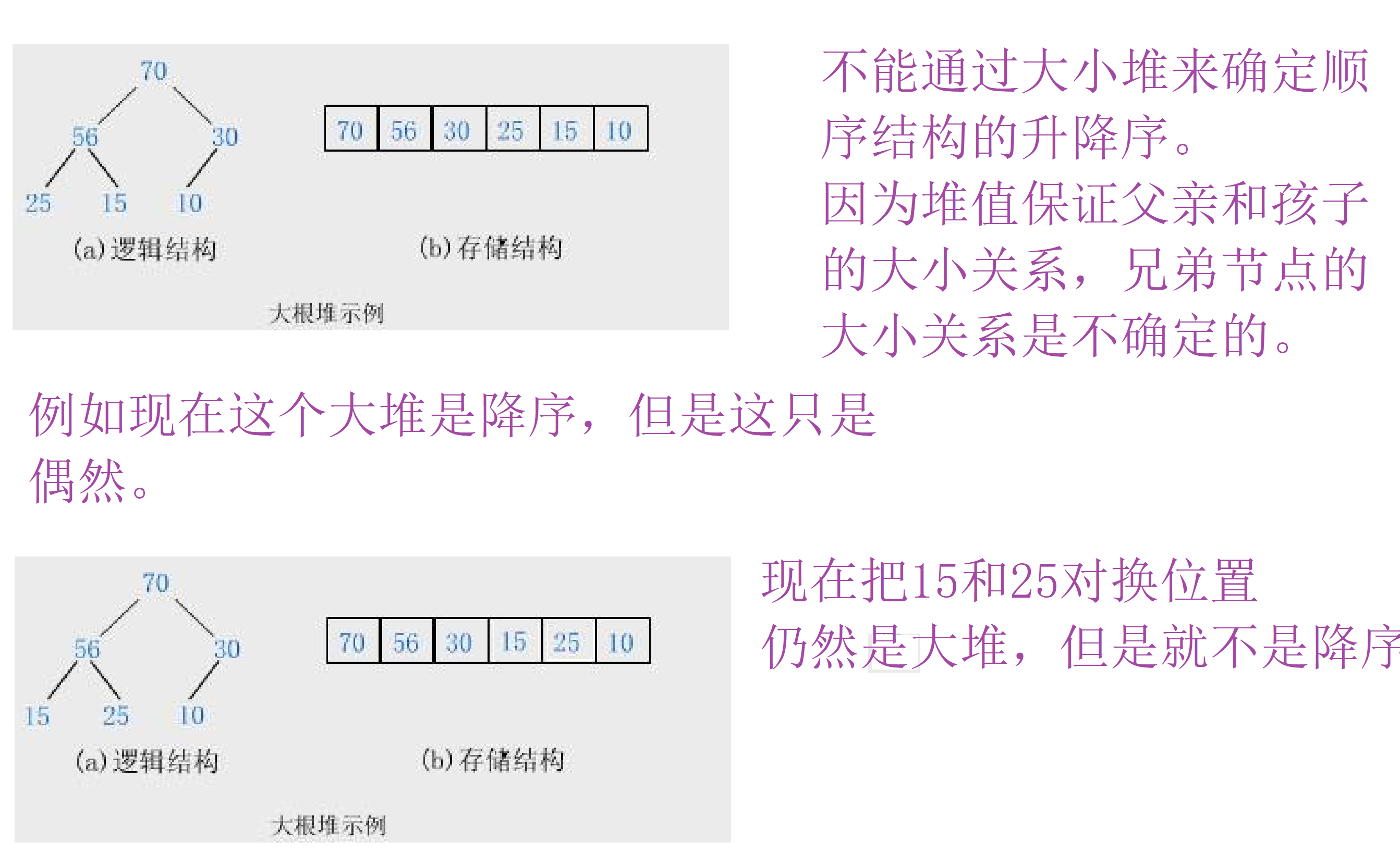 如果有一个关键码的集合K = { , , ,…, },把它的所有元素按完全二叉树的顺序存储方式存储在一个一维数组中,并满足: <= 且 <= ( >= 且 >= ) i = 0,1,2…,则称为小堆(或大堆)。将根结点最大的堆叫做最大堆或大根堆,根结点最小的堆叫做最小堆或小根堆。