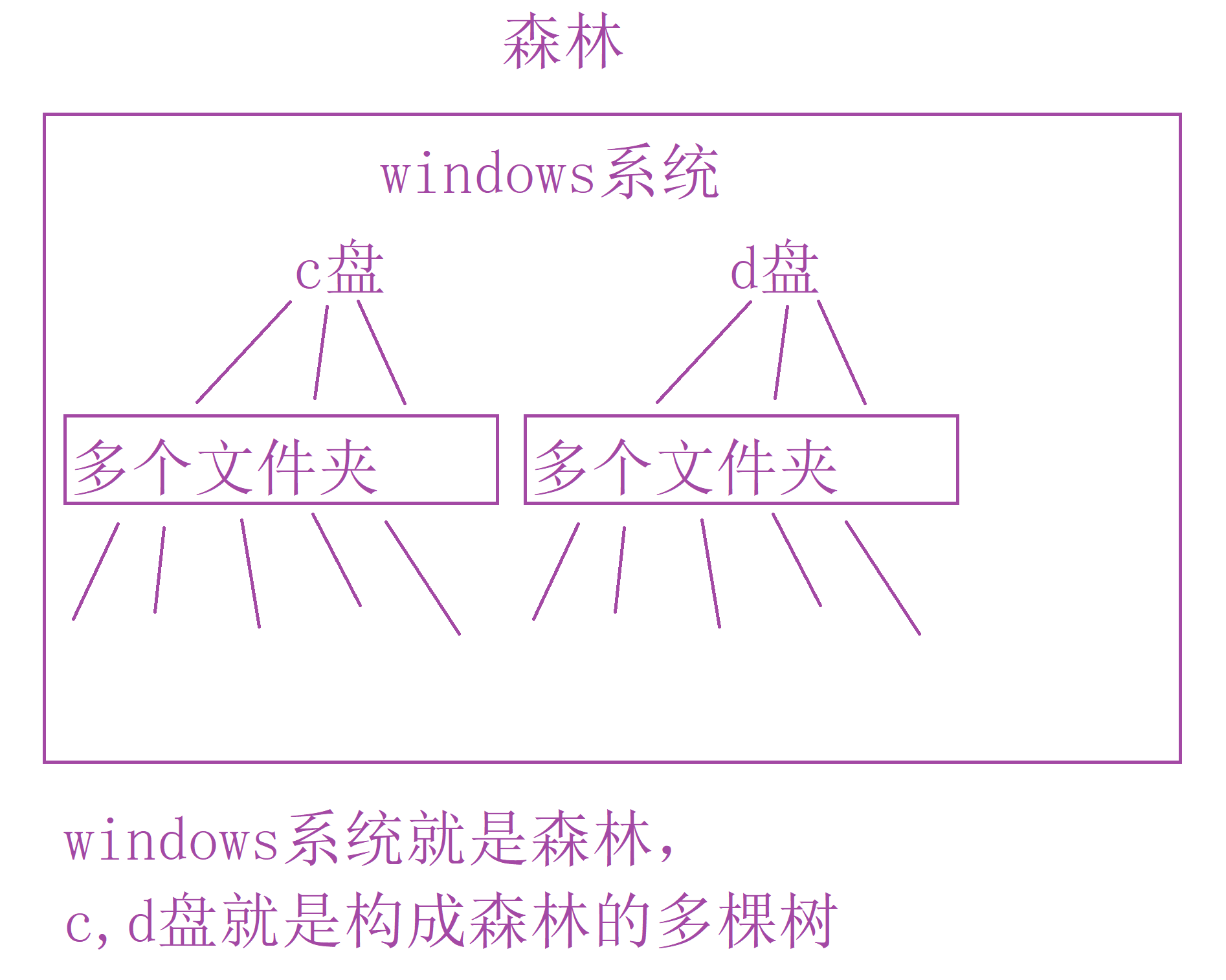 其实window系统就是森林。里面的C盘和D盘就是构成森林的多棵树。