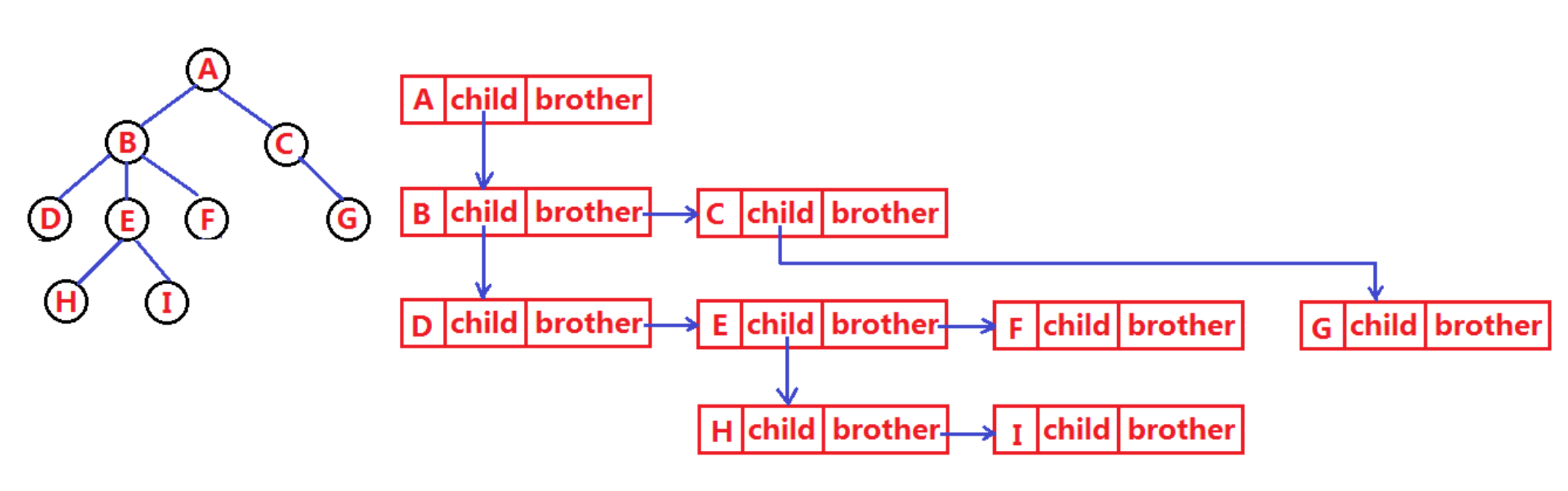 这样我们找到左边的第一个孩子,在通过孩子的兄弟指针就可以找到所有的孩子节点。