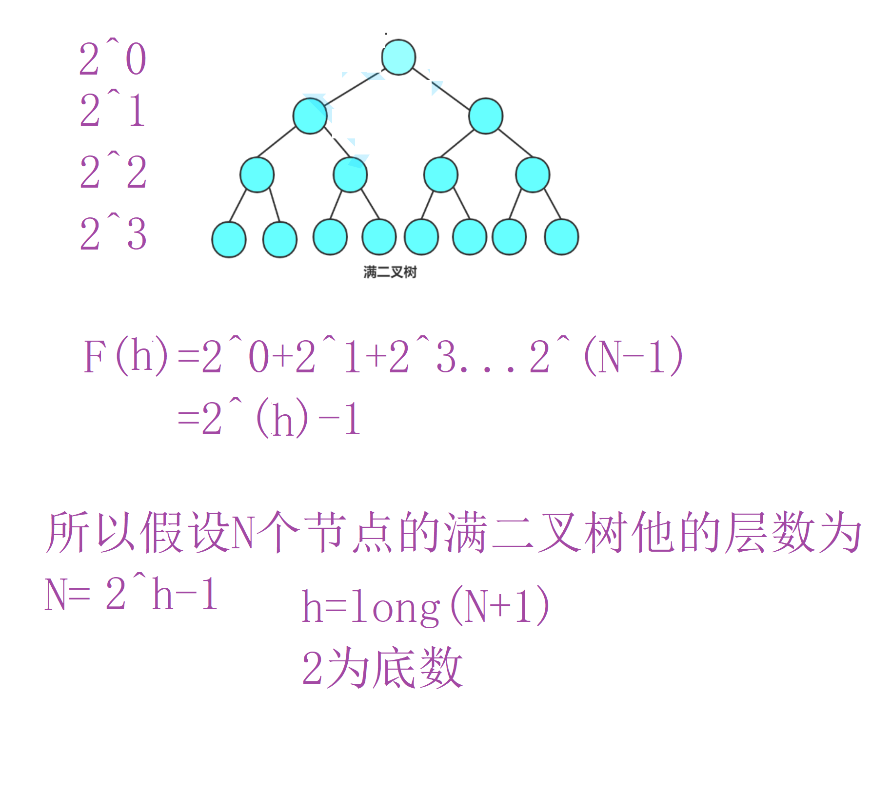 满二叉树除了最后一层度为0,其他节点都是度为2.
