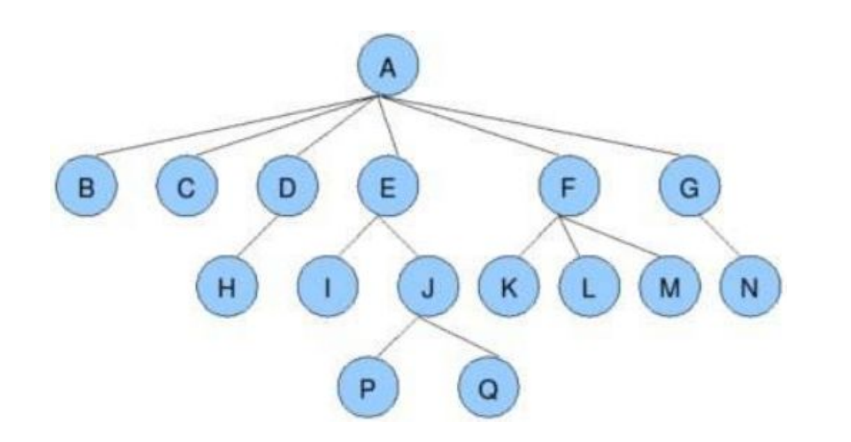 非终端结点或分支结点:度不为0的结点; 如上图:D、E、F、G…等结点为分支结点
