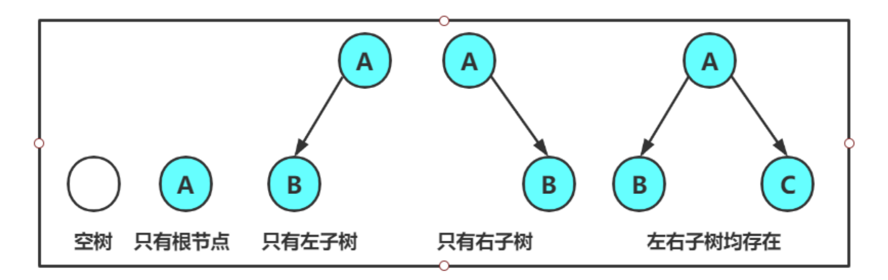 注意:对于任意的二叉树都是由以下几种情况复合而成的: