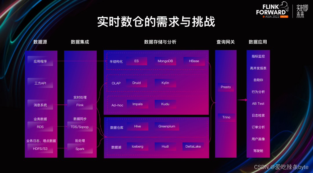 在此背景下,需要构建⼀个“极速、易用、统一、实时”的数据架构来解决这些痛点: