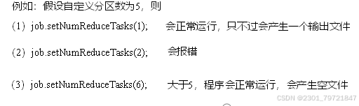 3)自定义Partition后,要根据自定义Partitioner的逻辑设置相应数量的ReduceTask