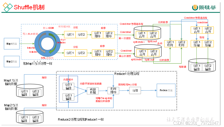 Map方法之后,Reduce方法之前的数据处理过程称之为Shuffle。