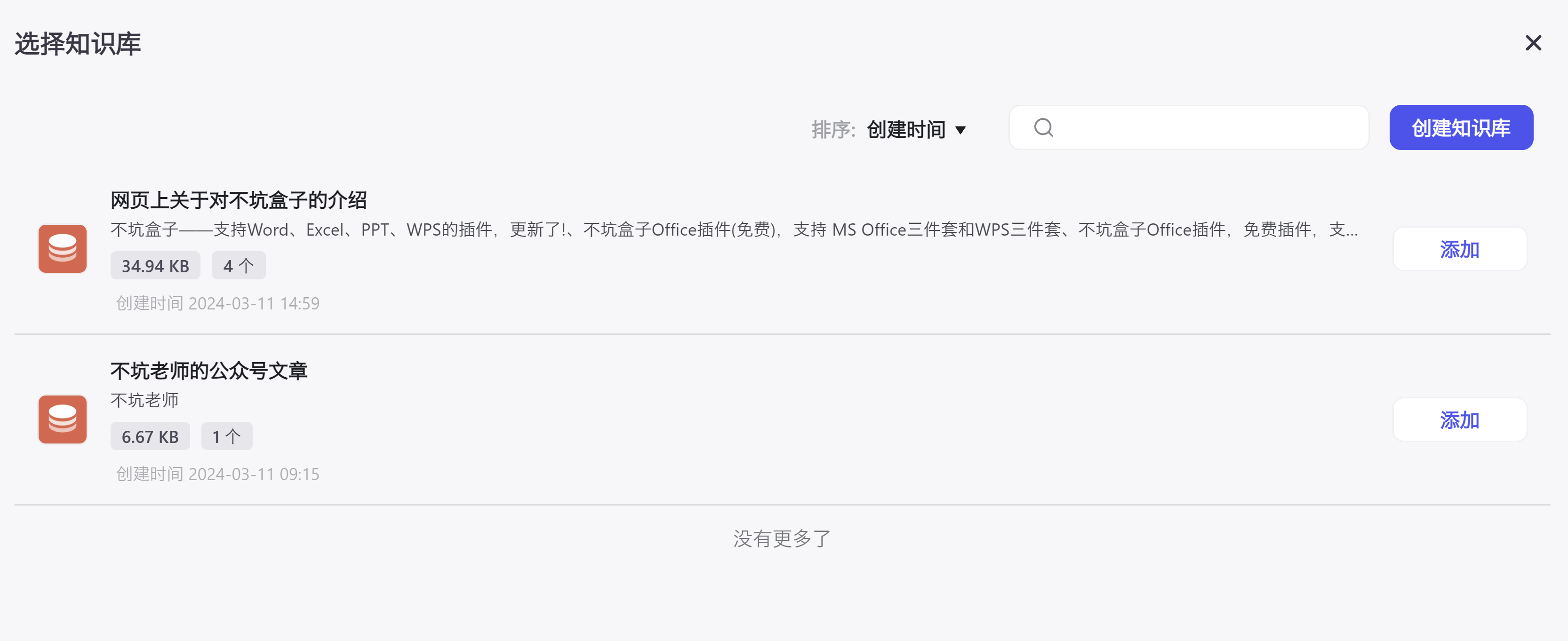 创建完知识库后,记得一定要点添加