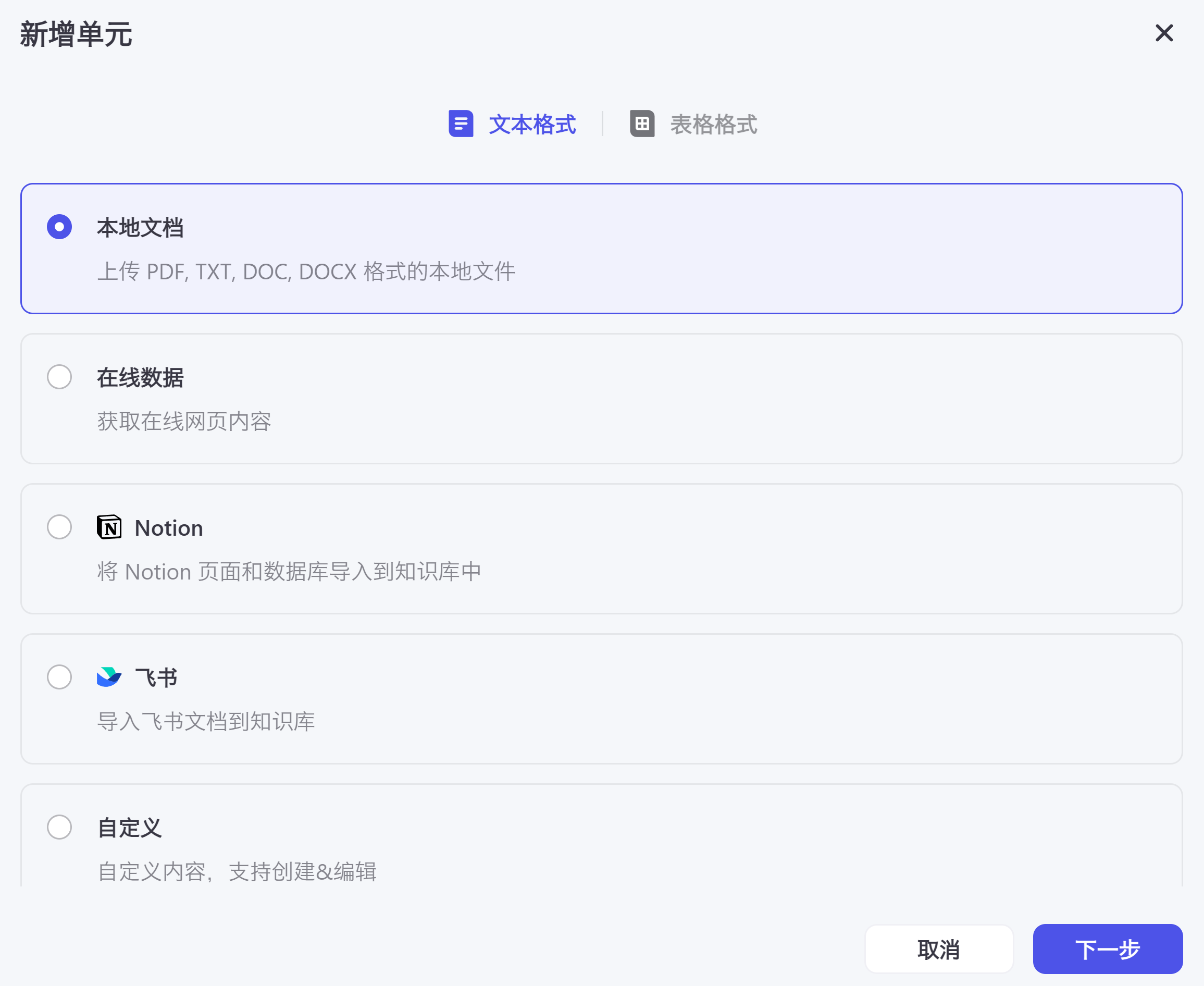 这里面可以添加网页、文档,但你不要上传图片格式的PDF,要上传可以复制文字的那种PDF。