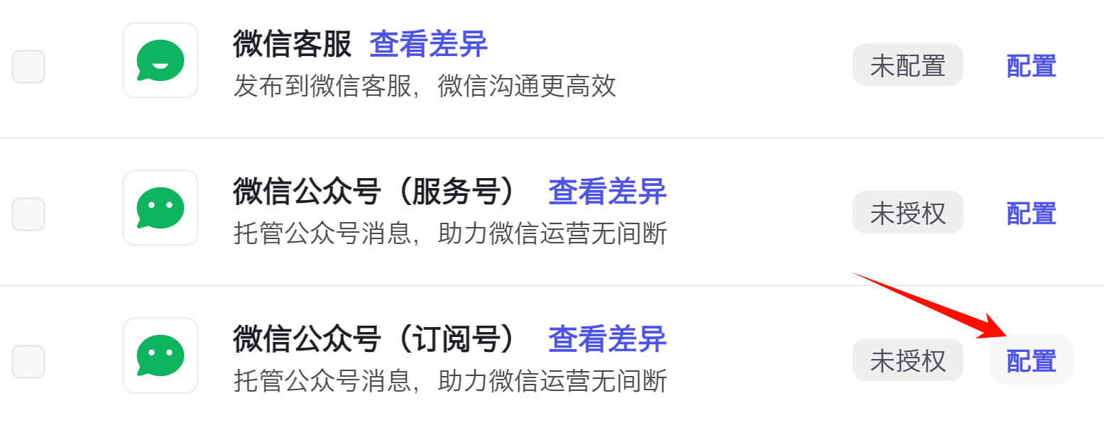 接下来,回到“扣子”平台的发布界面,点公众号后面的配置