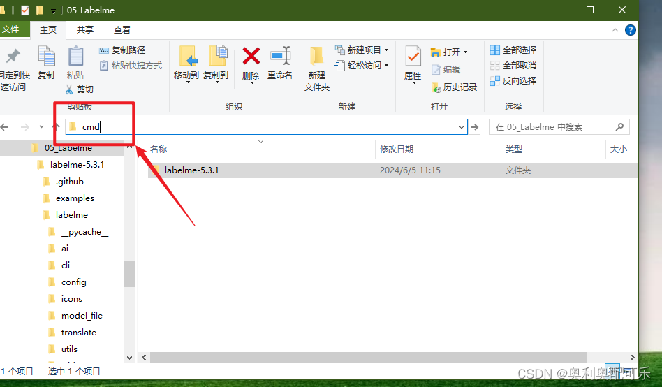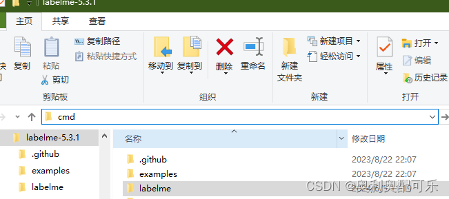 在目录:labelme-5.3.1中打开cmd