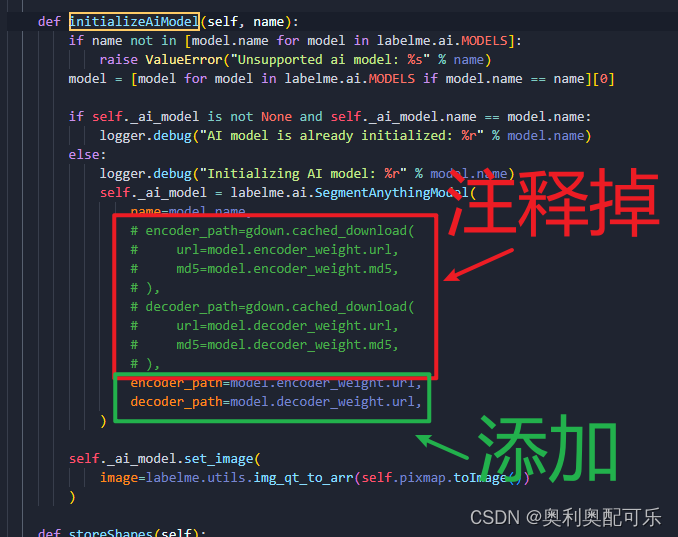 打开文件:labelme-5.3.1\labelme\widgets\convas.py 找到132行initializeAiModel进行如下修改