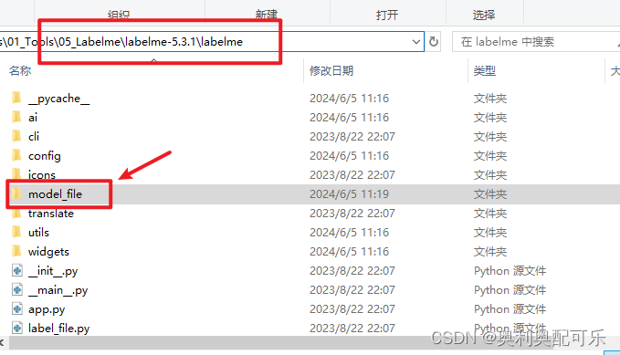 在目录labelme-5.3.1\labelme下创建一个新文件夹:model_file
