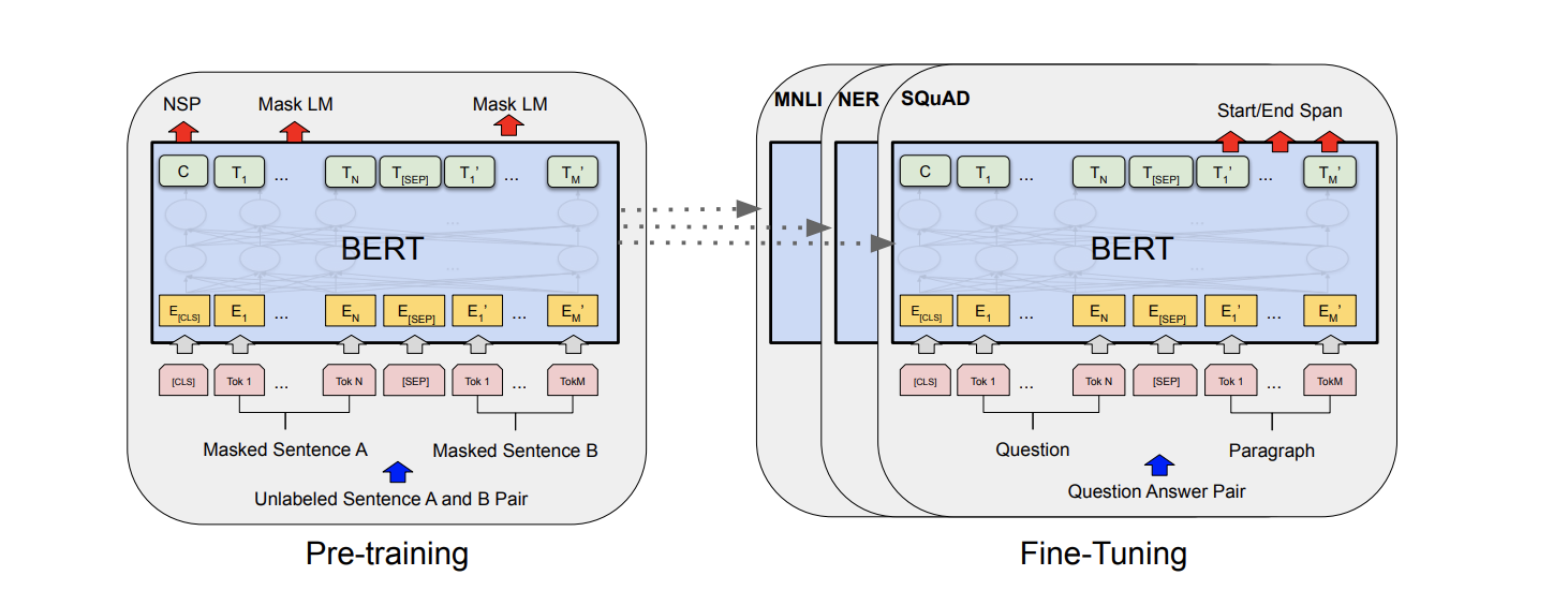 BERT 模型是 Google AI 研究院提出的一种预训练模型,通过预训练 + 微调的方式于多个 NLP 下游任务达到当时最先进水平,如实体识别、文本匹配、阅读理解等。与样例 1 一样,BERT 模型微调时,将预训练好的模型参数复制到微调模型,而输出层参数随机初始化。