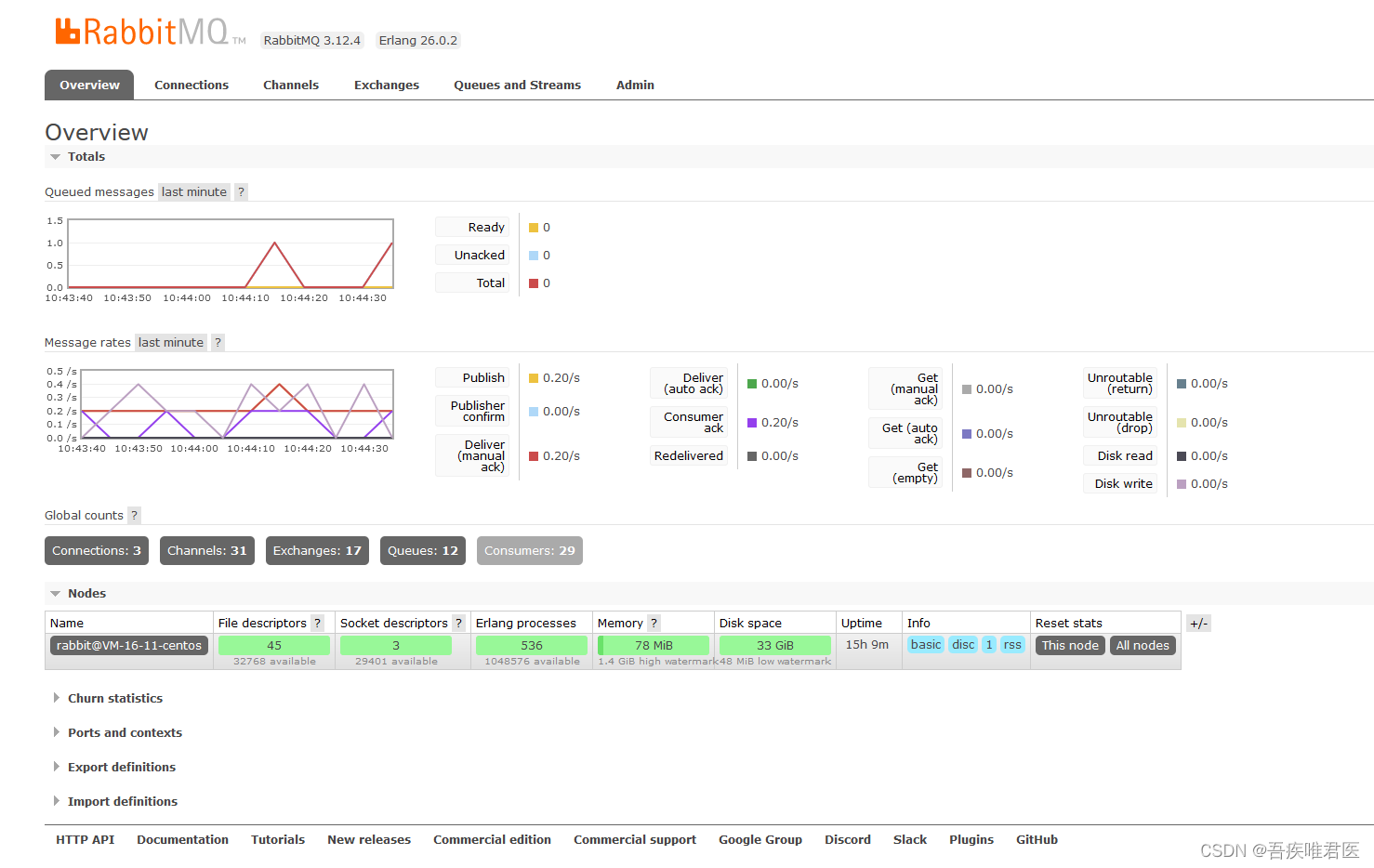 出现了这样的情况,生产者生产了3条消息后,RabbitMQ demo才消费了最后一条,而消息生产并未出现异常,也就是说,定时任务调用生产者生产消息均是正常的,但demo里面只消费了最后一条消息,之前生产的两条消息不知什么情况,是丢失了还是发生返回了,如果发生返回,后面应该会再次被demo消费掉,但是很久也没有查到之前的两条消息的消费情况。唉,索性小编又开放了服务器的ui管理端口,通过访问服务器RabbitMQ的ui管理来查查吧,同样的,在外面访问ui管理仍然需要使用新建的远程用户进行登录。