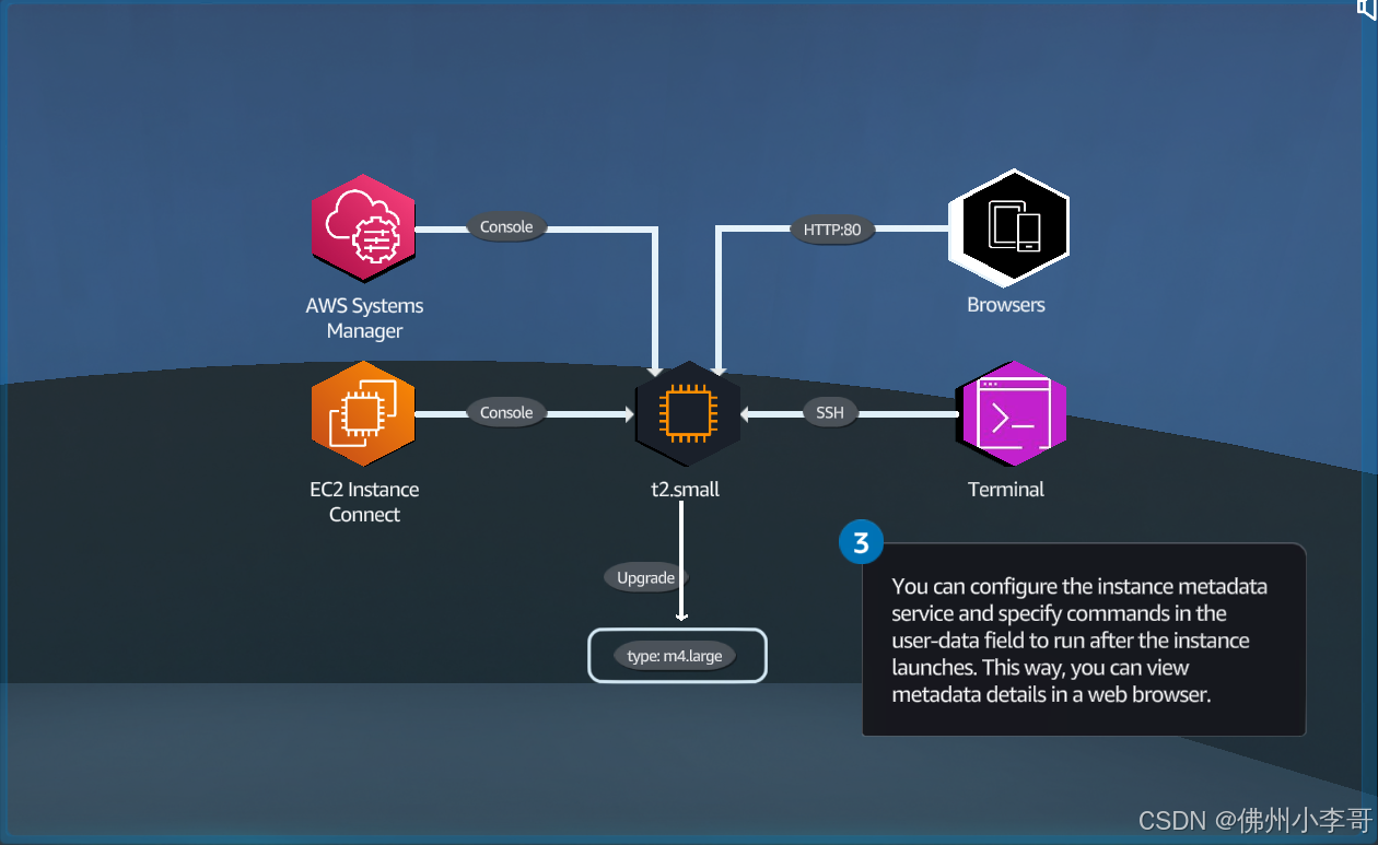 我将每天介绍一个基于亚马逊云科技AWS云计算平台的全球前沿云开发/架构技术基础解决方案,帮助大家快速了解国际上最热门的云计算平台亚马逊云科技AWS最佳实践,并应用到自己的日常工作里。本次我将介绍如何在亚马逊云科技上维护EC2网页服务器,利用system manager登录EC2服务器进行日常维护,并配置开机启动脚本。本方案架构图如下:
