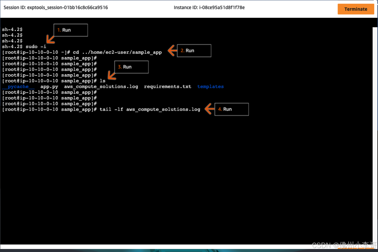 5. 进入到Amazon Linux(基于RedHat的Distribution)的命令行里,运行以下命令进行基本的维护操作。