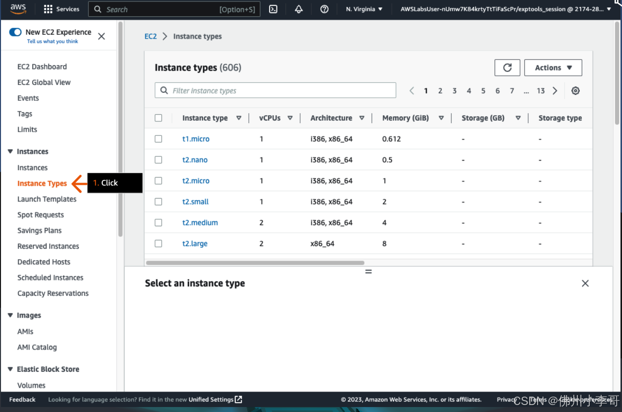 2. 如果希望为自己的EC2服务器获取合适的实例类型,我们可以进入到左侧的“Instances Type”部分进行查看。