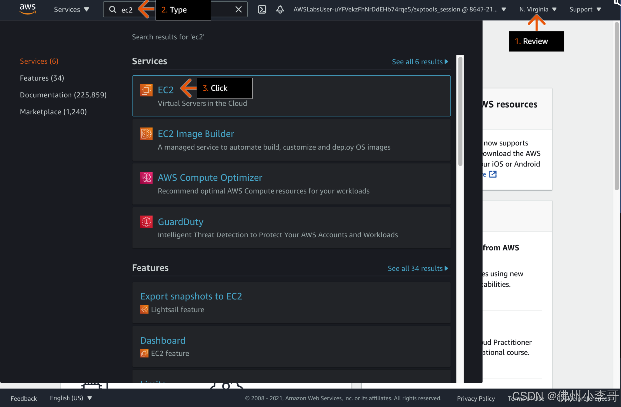 1. 进入到亚马逊云科技控制台,搜索EC2服务后进入