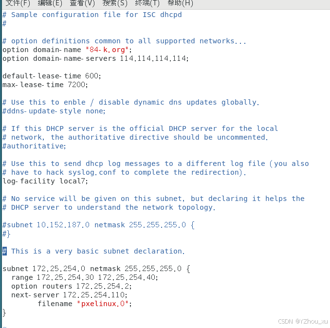 yum install dhcp -y 安装dhcp服务为其他服务器提供分配ip的功能
