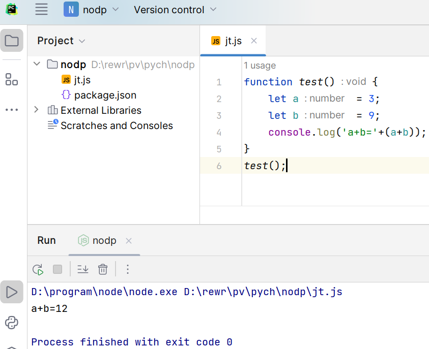 通过windows的cmd.exe命令行运行node,这种方式类似cmd运行c/c++编译器一样,具体参见Windows的cmd运行编译器(cmd运行c/c++、python等),那里调用c/c++编译器用gcc或g++,这里我们用node.exe调用node运行环境。 如图5-1我们使用cmd运行文件jt.js(代码如下)。