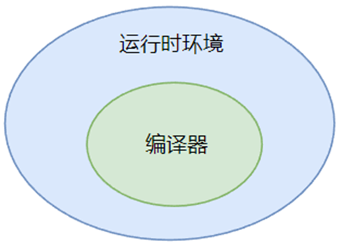 运行时环境(运行环境、Runtime Environment、run-time system)是一个编译器(广义上讲)角色并附加一些其它资源以实现代码的运行。编译器(compiler)是运行环境的核心。Node.js是运行环境,实际上,一般来讲,我们安装某种语言也是获得该语言的运行环境(比如:python的安装)。运行时环境与编译器之间的关系见图1-1所示。