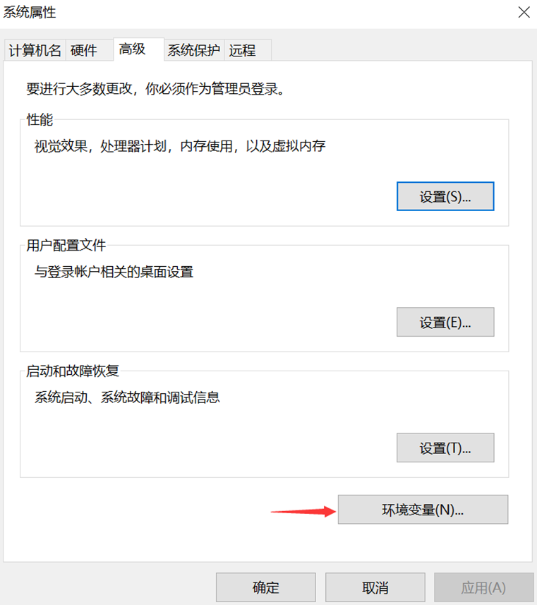 在图4-10中单击红色箭头处的环境变量,进入图4-11环境变量界面。