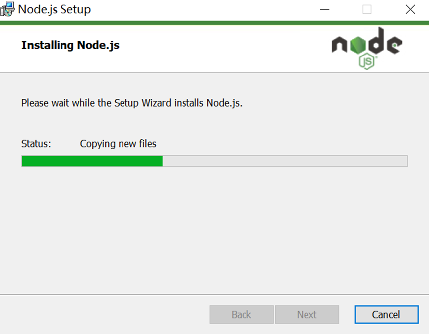 图3-8安装进度完成后,出现图3-8所示的Node.js安装完成的提示界面。