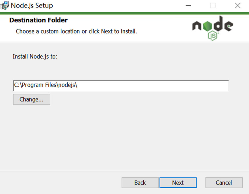 勾选I accept the terms in the License Agreement,单击图3-2的Next,进入图3-3所示的Node.js安装位置设置的界面。