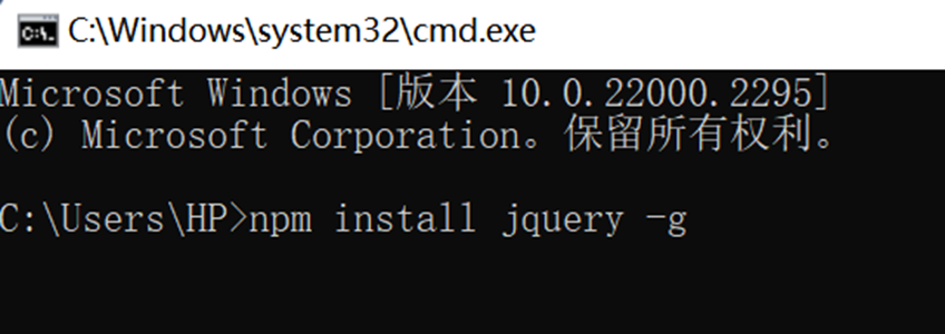 图4-1的命令npm install jquery是本地安装jquery在C:\Users\HP\node_modules里,本地安装的包的安装路径可以用命令npm root查看。另外,注意,在其他终端窗口进行本地安装可能路径不同。