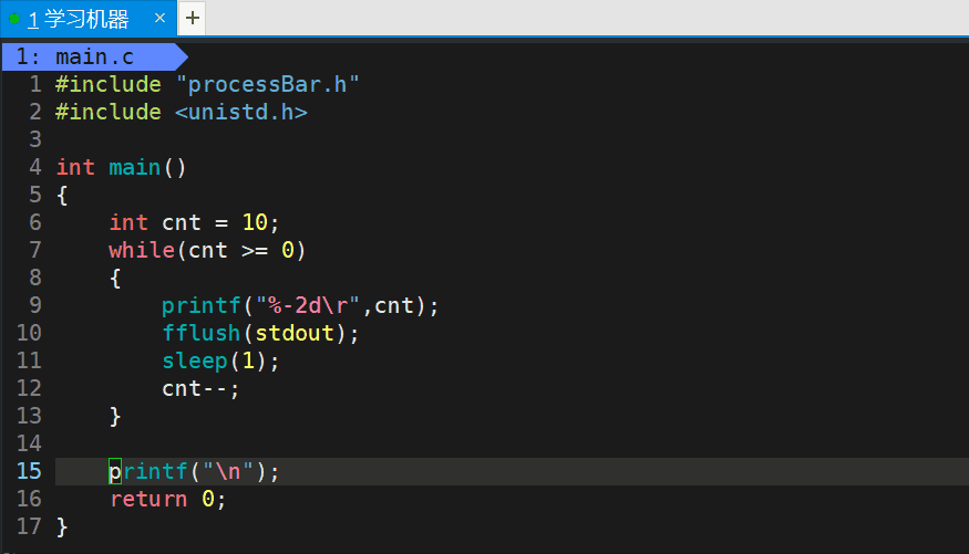 #include "processBar.h" #include int main() { int cnt = 10; while(cnt >= 0) { printf("%-2d\r",cnt); fflush(stdout); sleep(1); cnt--; } printf("\n"); return 0; } 📖效果演示