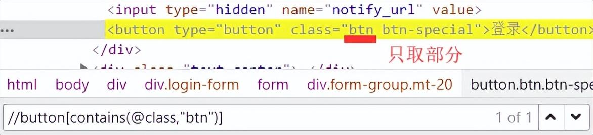 3.2 【模糊定位】使用contains() 包含函数 如://button[contains(text(),"登录")]、//button[contains(@class,"btn")] 除了contains不是=等于 多用于display属性