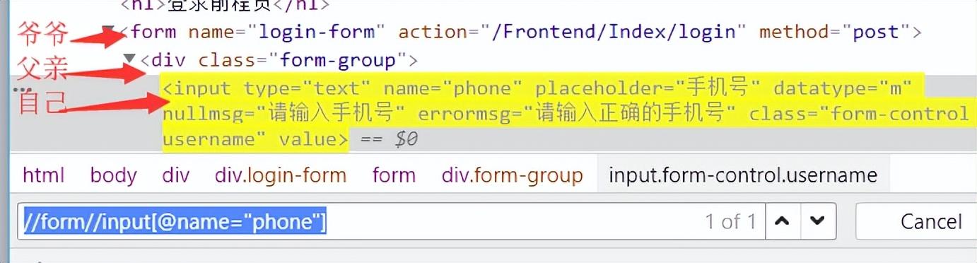 2.1 相对定位 -- 以// 开头 如://form//input[@name="phone"]