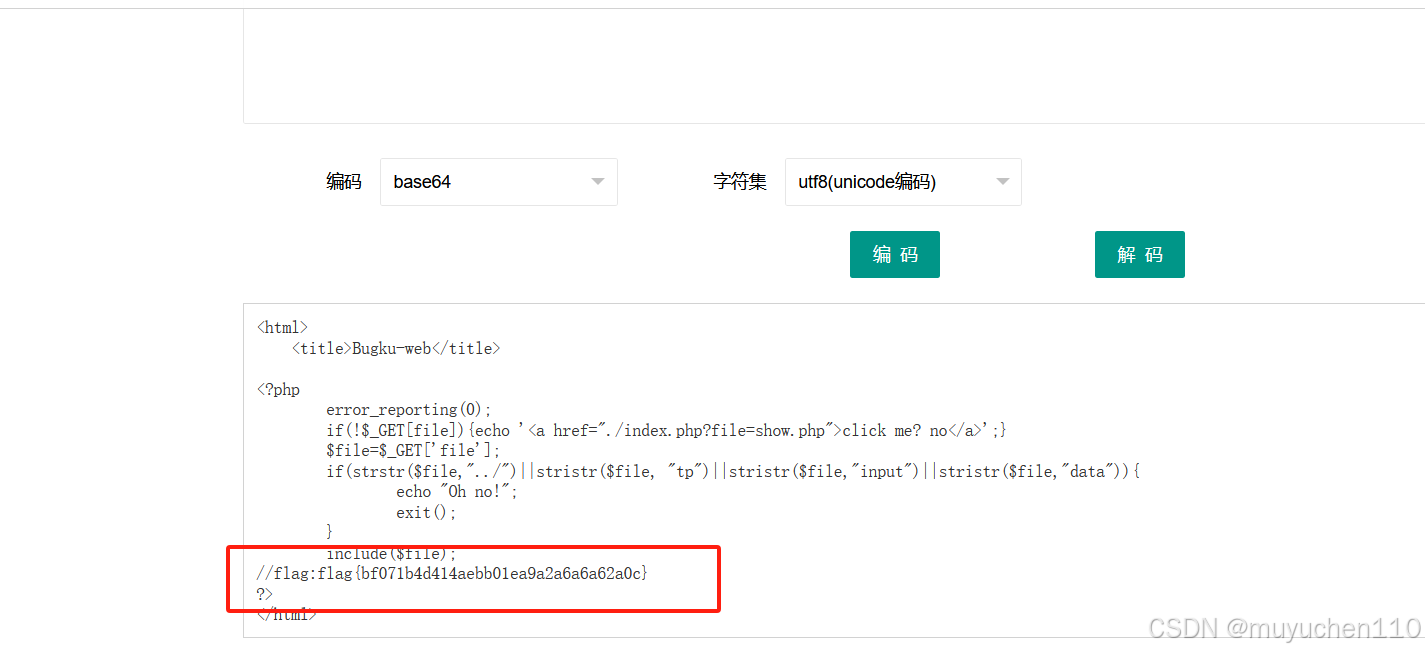 点击后,跳转到一个index页面,并且url后有file=show.php,根据题目和搜索知道这是典型的文件包含问题,之后尝试改为flag=index,发现不对