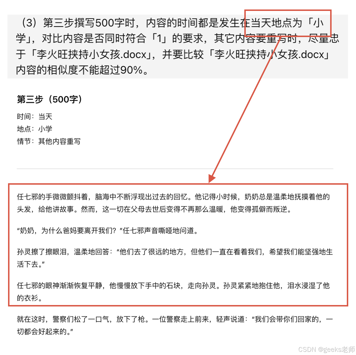 看输出的内容就知道,前者完全就是童话故事,后者看个前面1000字,再对比一下Prompt,完全是按照Prompt来写,这个初稿非常满意,只要在这个基础上修改,就能成为惊世一章!