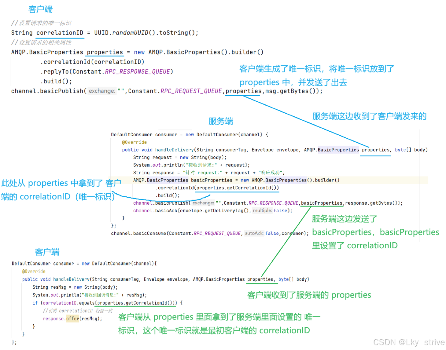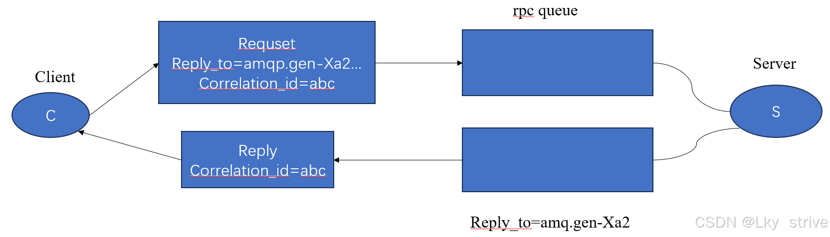 声明两个队列,包含回调队列 replyQueueName ,声明本次请求的唯一标志 corrId