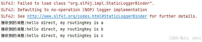public static final String DIRECT_EXCHANGE = "direct.exchange"; public static final String DIRECT_QUEUE1 = "direct.queue1"; public static final String DIRECT_QUEUE2 = "direct.queue2";