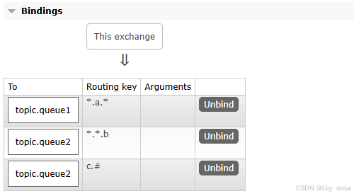 BindingKey:绑定,RabbitMQ 中通过 Binding(绑定),将交换机与队列关联起来,在绑定时指定一个 BindingKey,这样 RabbitMQ 就知道如何正确地将消息路由到队列了
