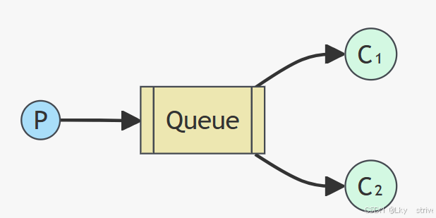 例如队列中有 10 条消息,两个消费者共同消费者 10 条消息,消息不会重复消费